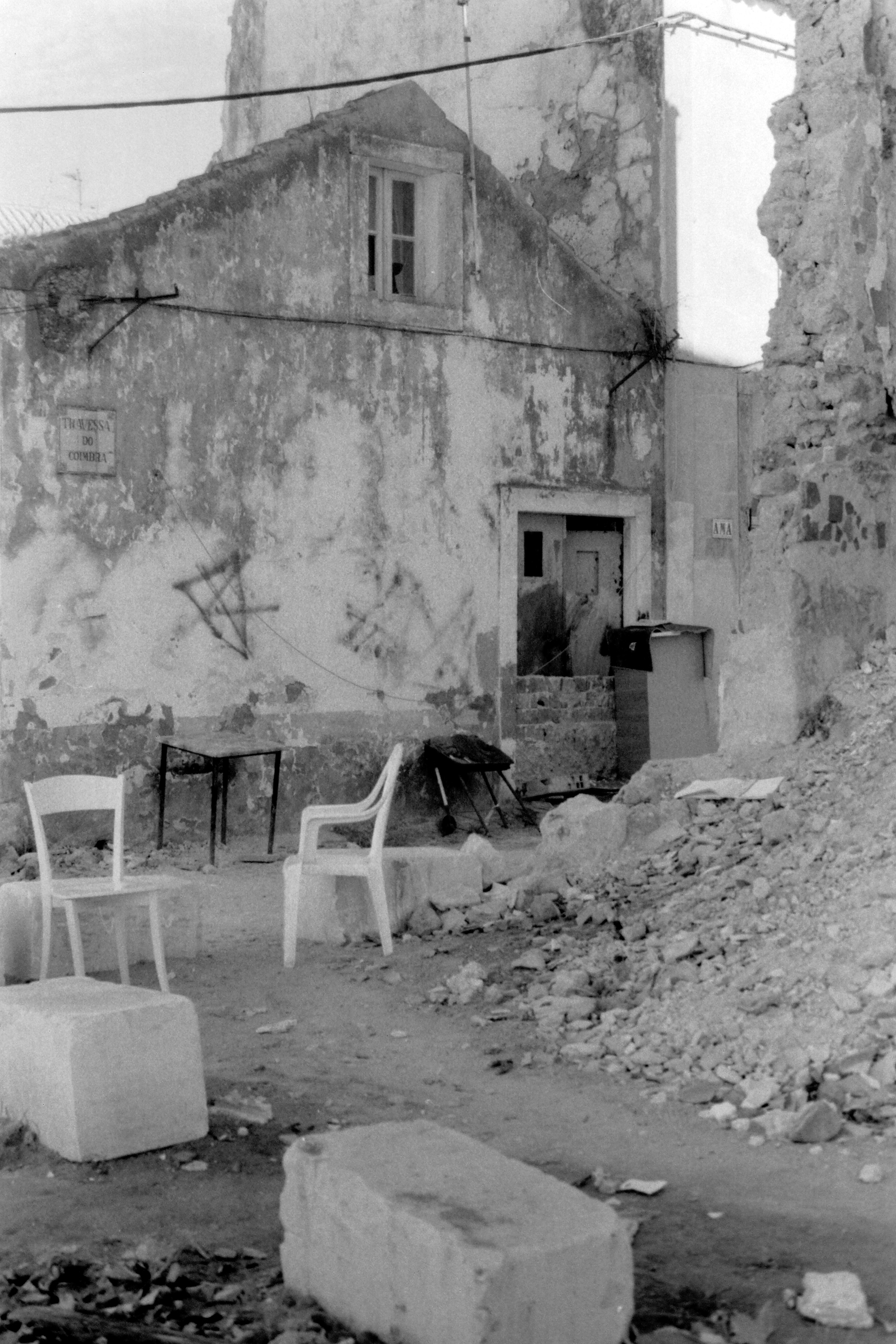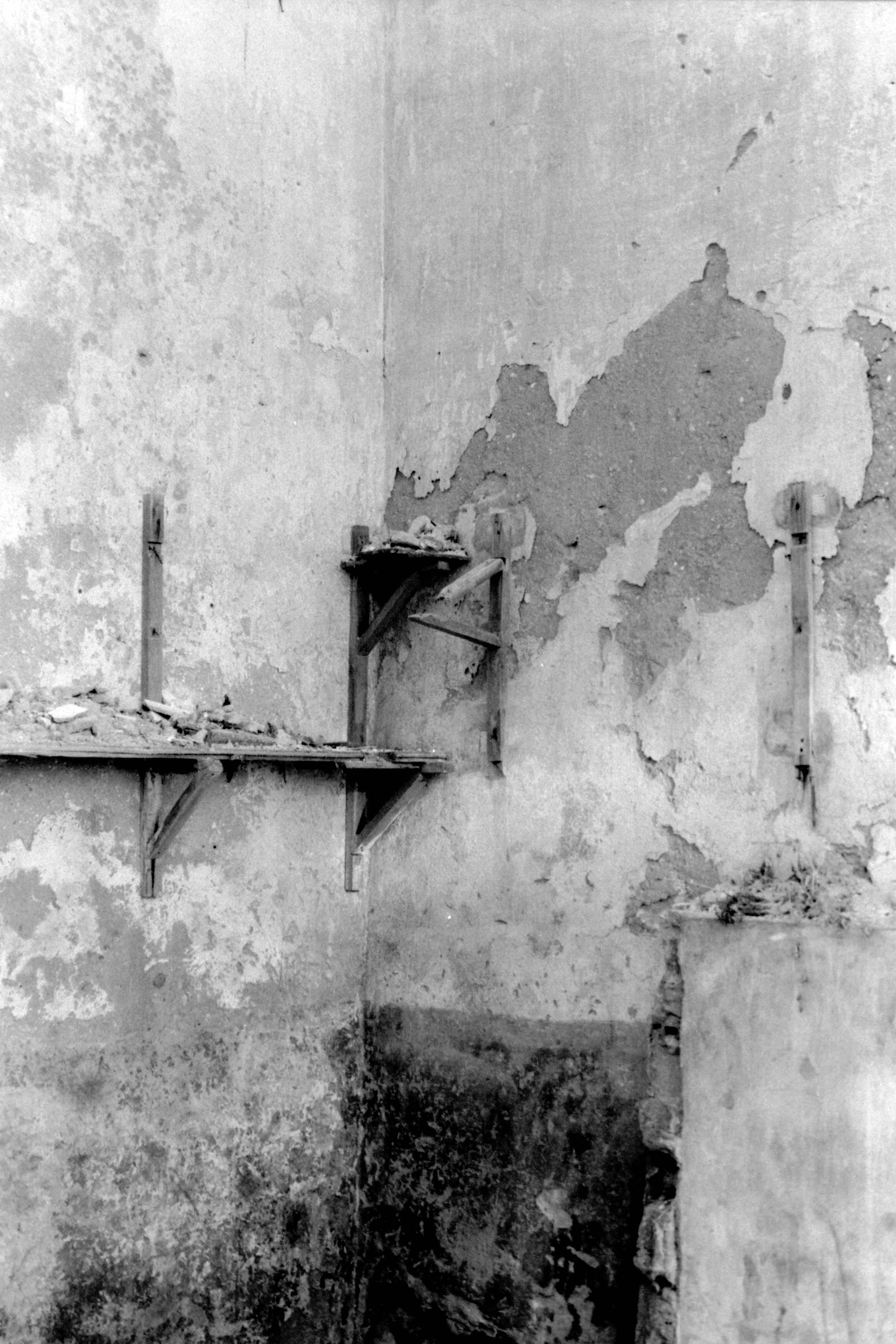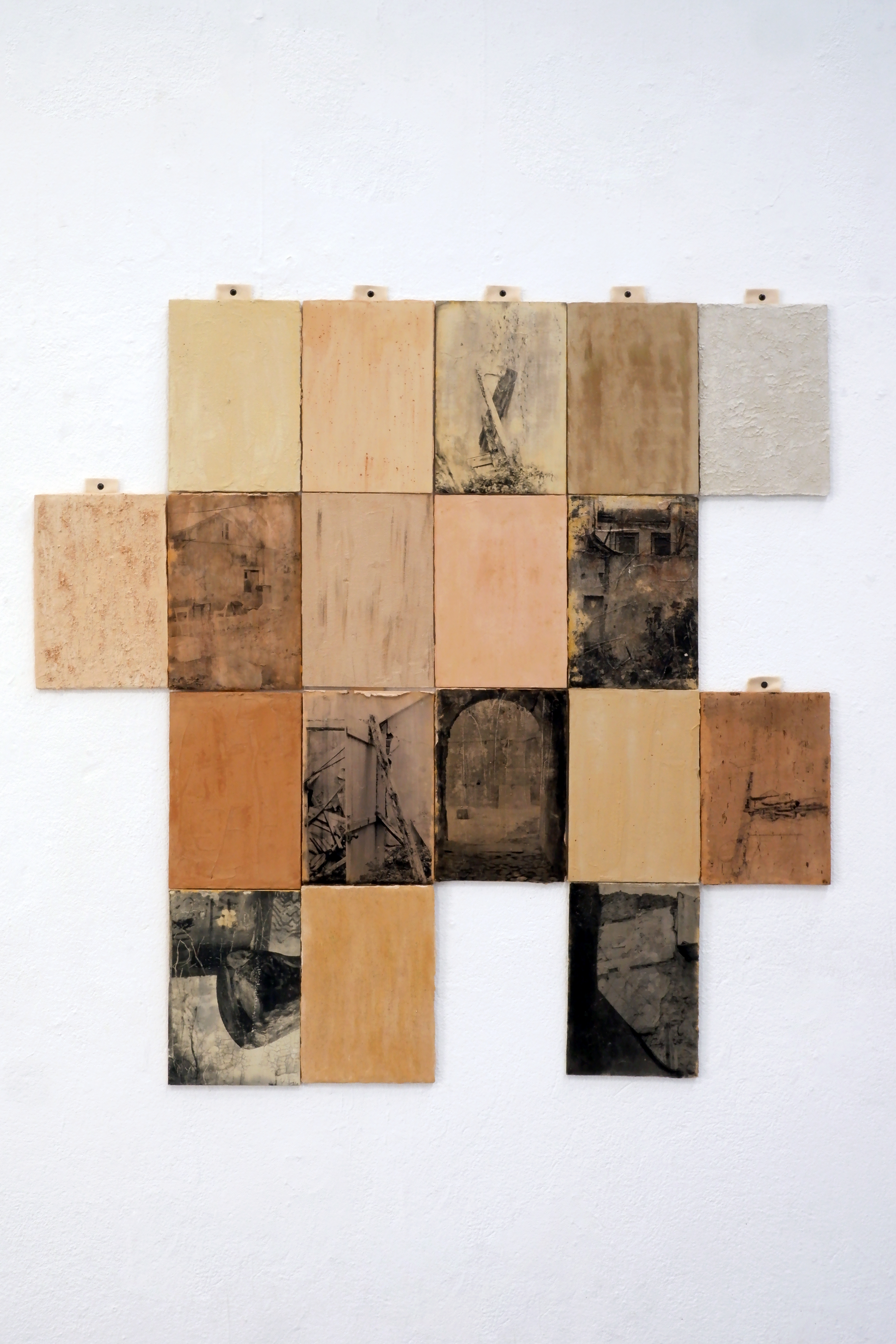Technique: photographic prints, powdered fragments collected from ruins, including red brick, wall paint and iron