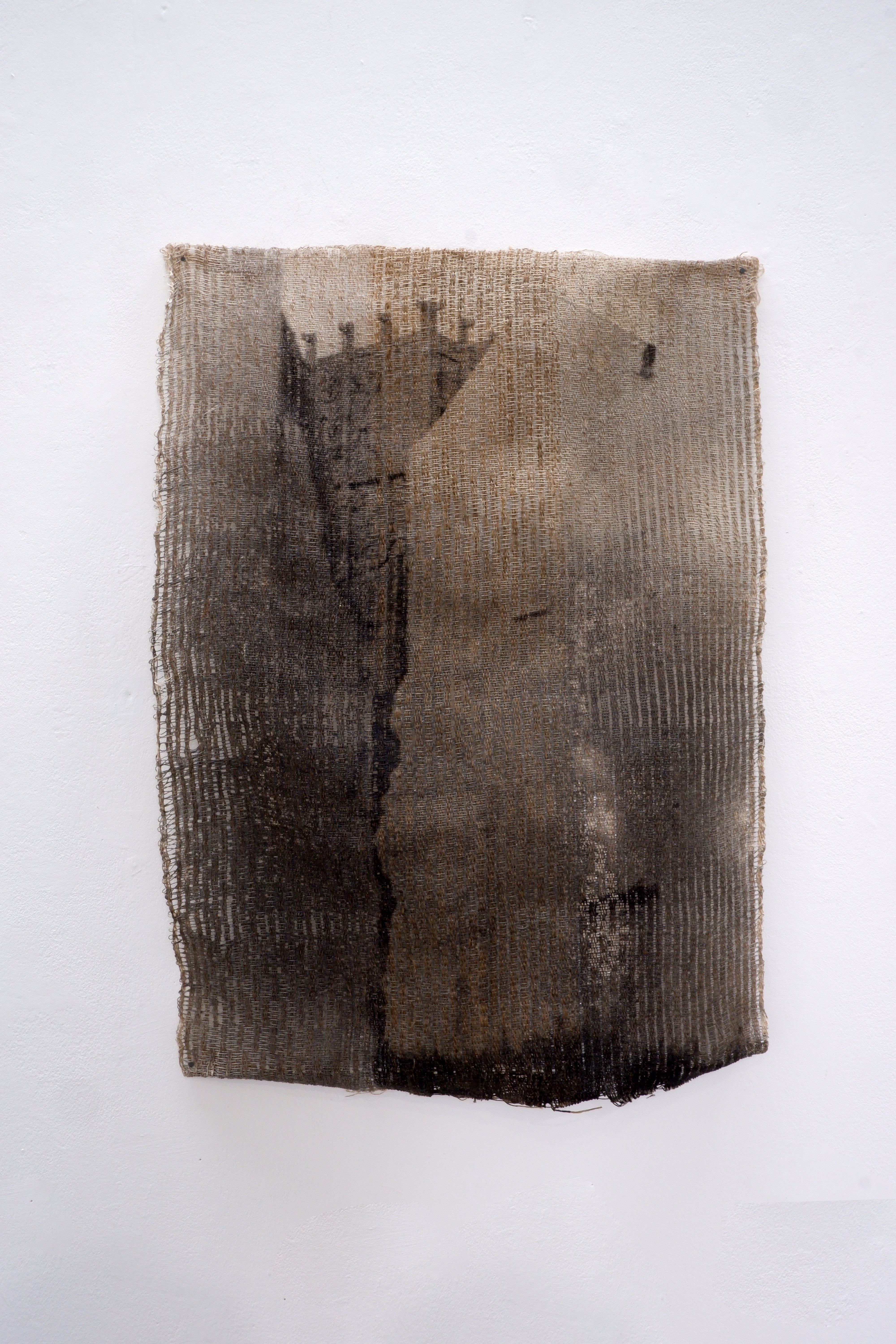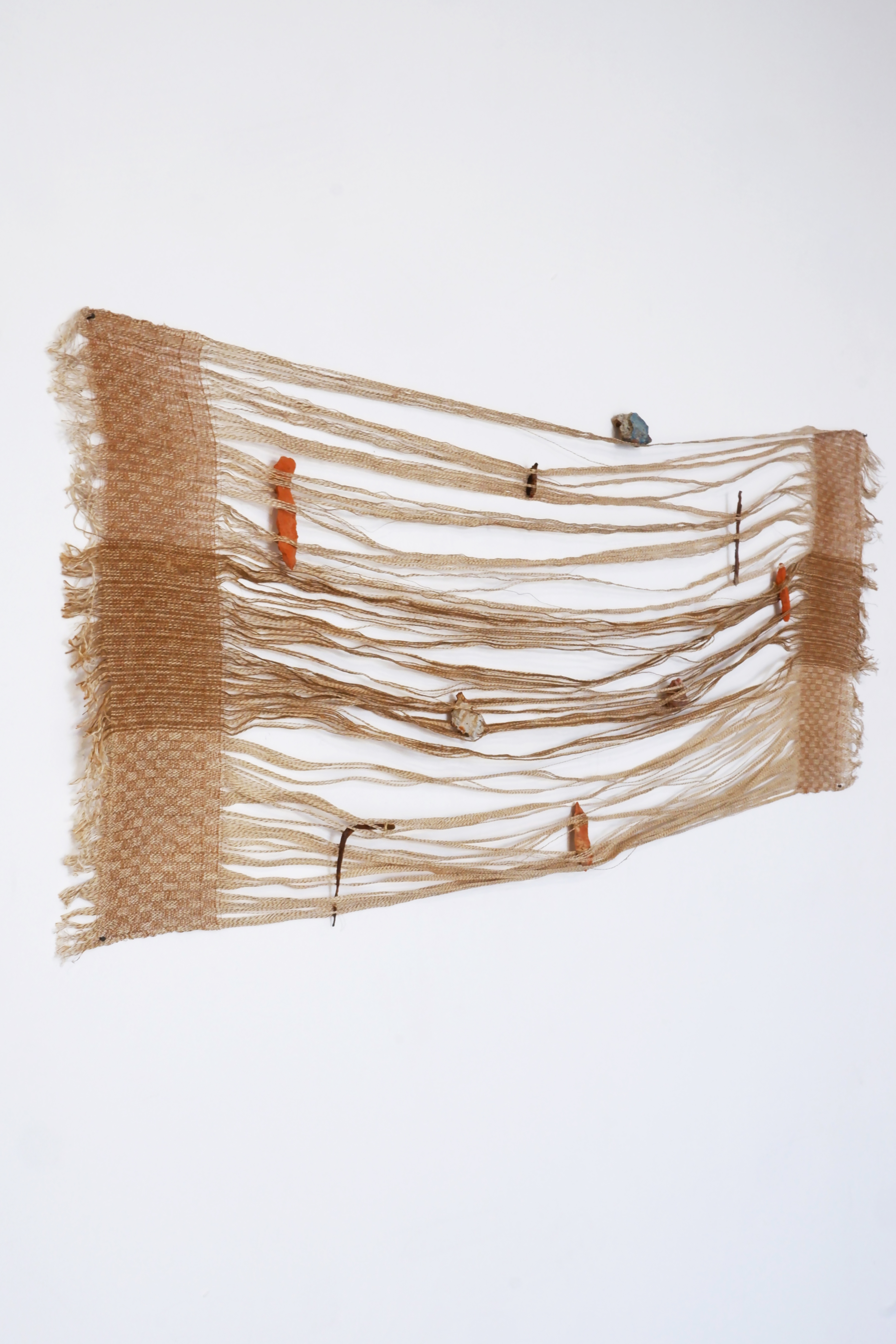 Technique: handwoven fabric with stitched fragments collected from ruins