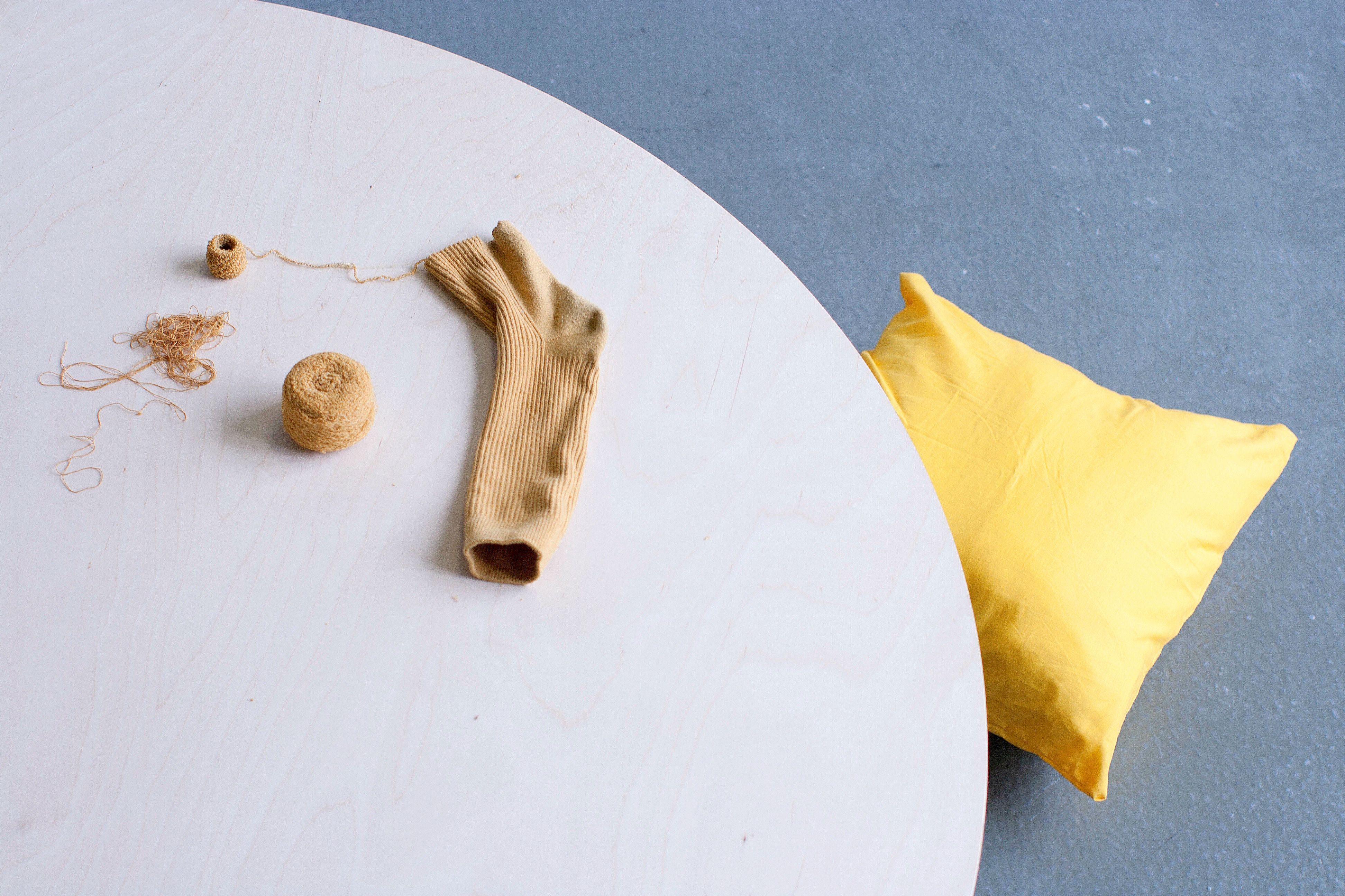 From encounters with nomadic lives, I gathered garments and textiles, objects worn close to the skin, charged with use and memory. Through unravelling, spinning, and weaving, each piece was released from its former form and joined with others.